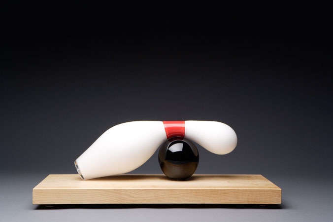 24 x 9 x 10 blown glass & wood