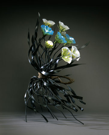 48 x 28 x 30 blown glass, bronze & steel