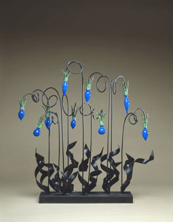 34 x 33 x 15 blown glass, bronze & steel